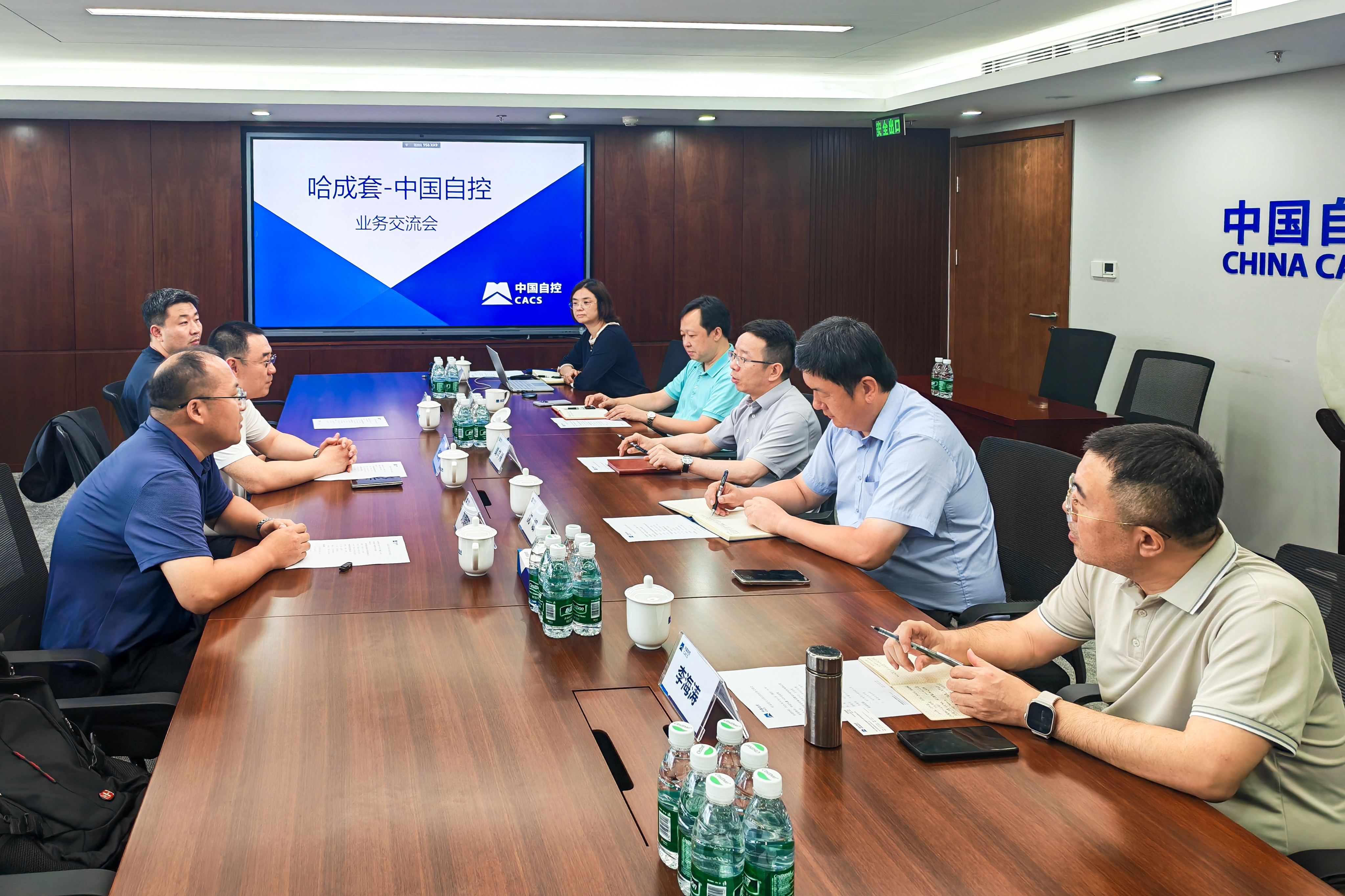 ????哈成套智能系統工程部總經理劉朝陽介紹了哈成套的基本情況、科研能力和主營業務方向。中國自控副總經理沈斌介紹了公司的發展情況、重點業務布局和優勢業務領域。雙方就業務的契合方向、重點客戶資源等方面開展交流。